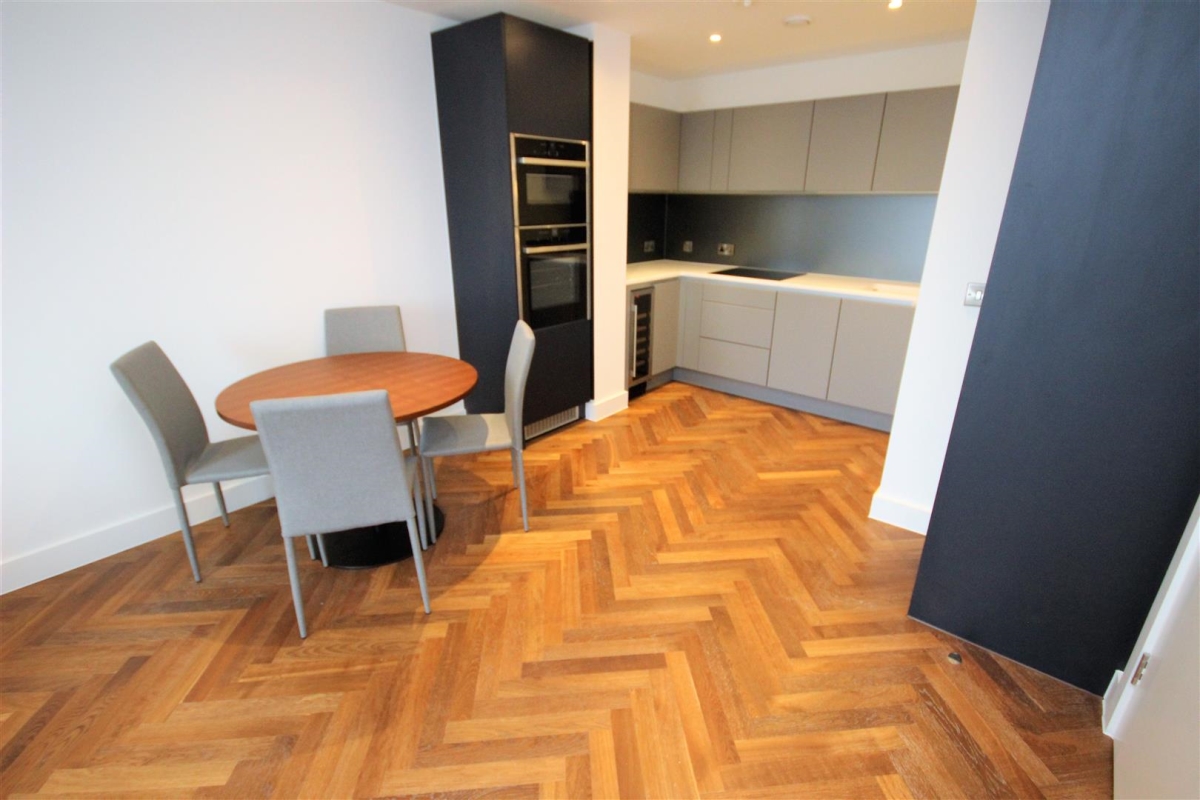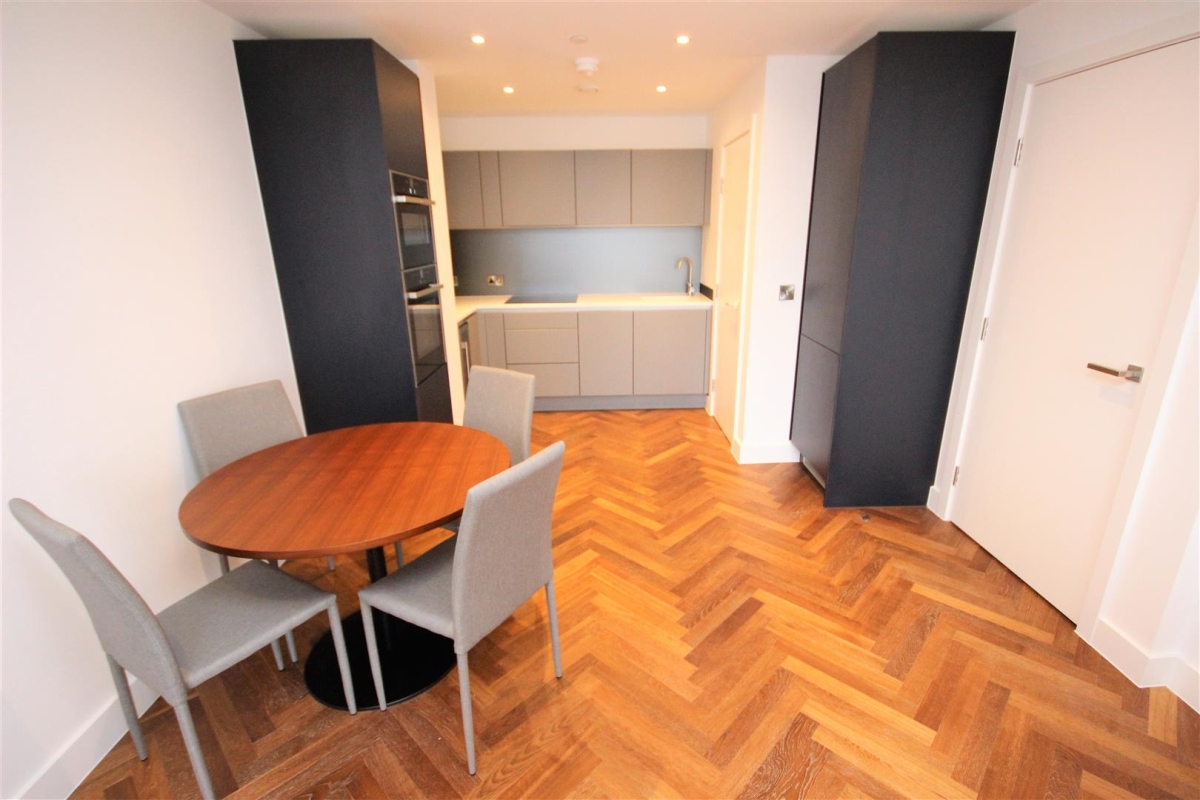 This 7th floor one bedroom apartment benefits from a high specification throughout to include oak herringbone flooring, bespoke fitted kitchens with integrated Neff appliances, dedicated hyperoptic internet provision and a state of the art fob entry system providing secure access throughout.